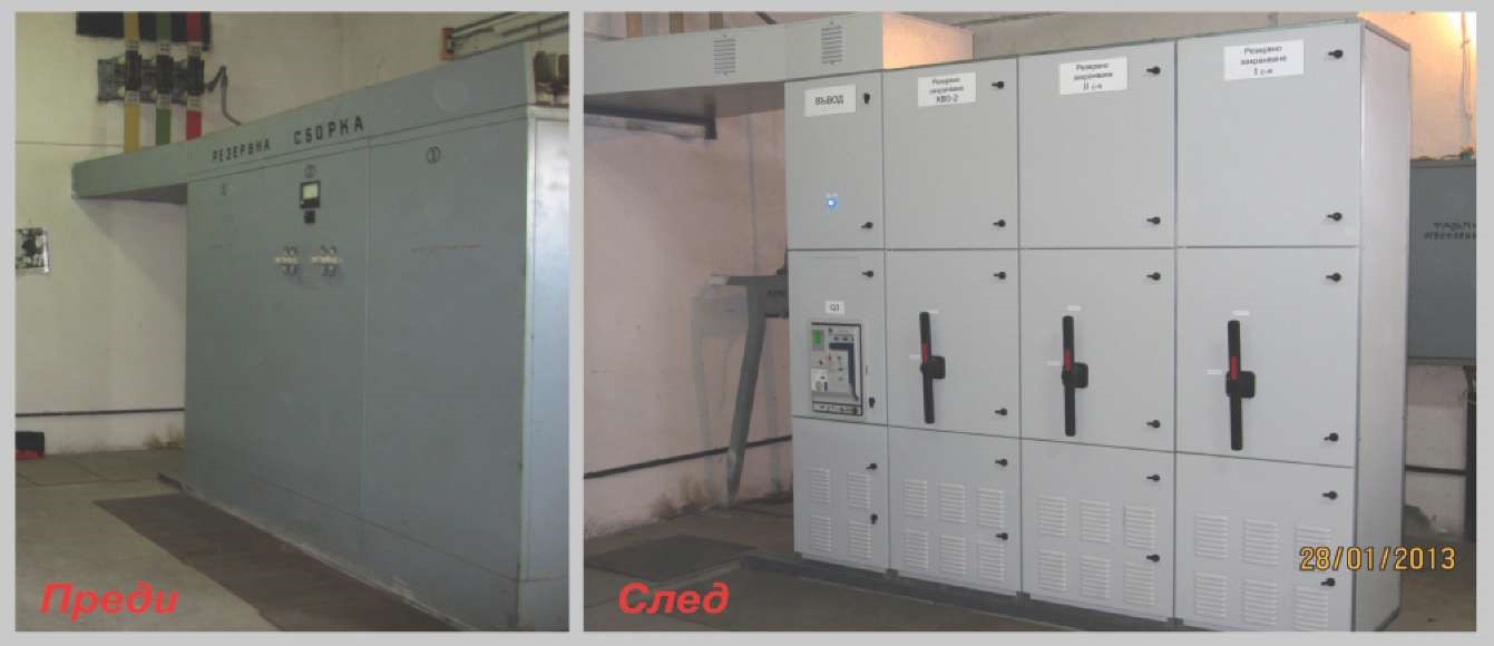 • Дейности: Проектиране в пълен обем, демонтиране на старите уредби и изработка, доставка и монтаж на нови типово тествани табла, изпитания.